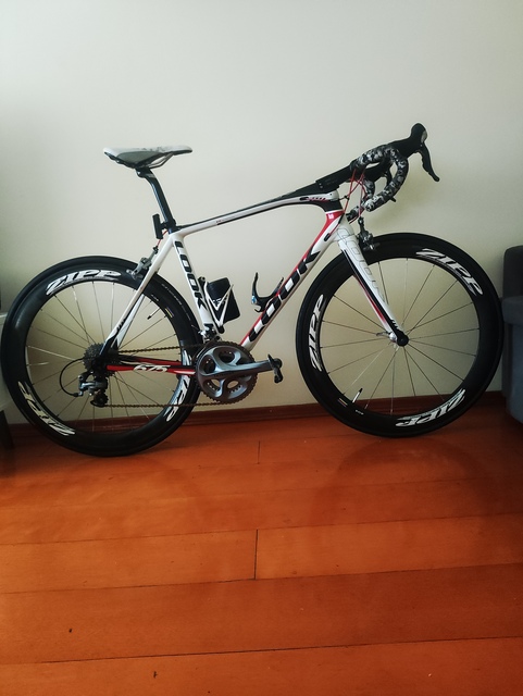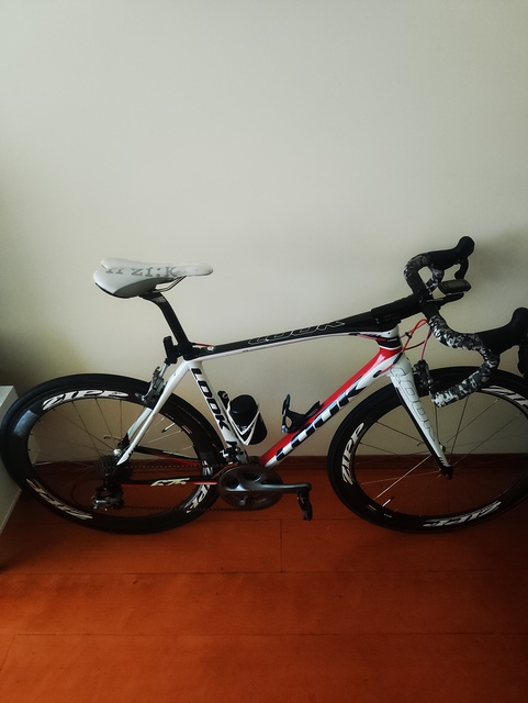 - Vai com rodas de carbono Zipp e rodas de alumínio Mavic Ksyirium