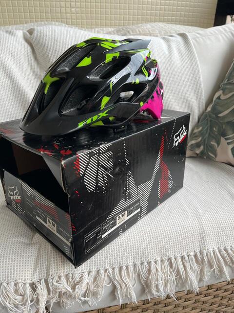 Capacete Fox FluxR$ 280,00Tam S/M, 54-58cm, excelente estado de conservação, com espumas reserva, na caixa original